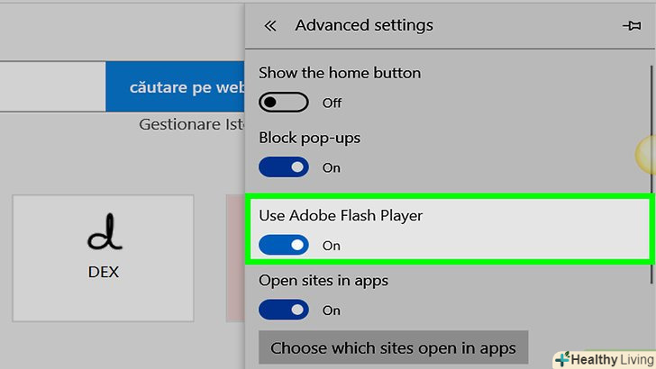 Натисніть на білий повзунок у «Використовувати Adobe Flash Player».ви знайдете його у верхній частині меню. Повзунок стане синім