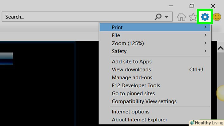Відкрийте меню «Налаштування». натисніть на значок у вигляді шестерінки в правому верхньому куті вікна Internet Explorer.