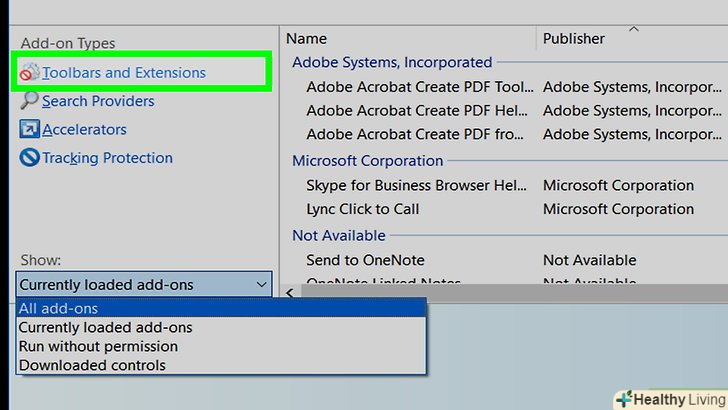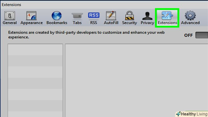 Перейдіть на вкладкуПанелі інструментів і розширення.вона знаходиться у верхній лівій частині вікна.