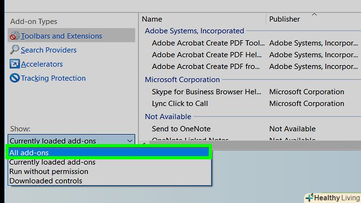 Клацніть поВсі надбудови.ця опція знаходиться в меню.