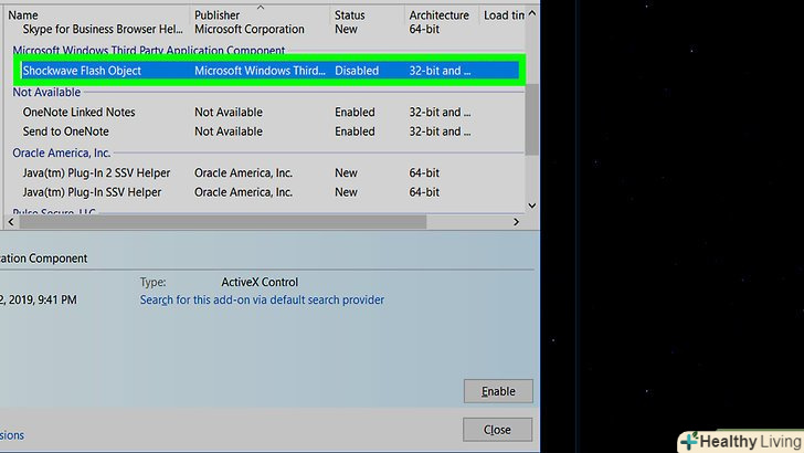 ВиберітьShockwave Flash Object.прокрутіть вниз, знайдіть опцію "Shockwave Flash Object", а потім клацніть по ній.