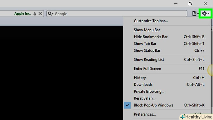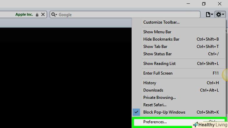 НатиснітьНалаштування.ця опція знаходиться в меню "Safari". Відкриється нове вікно.