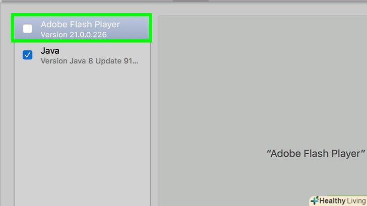 Перейдіть на вкладкуAdobe Flash Player. вона знаходиться в розділі «плагіни " в нижній лівій частині вікна.