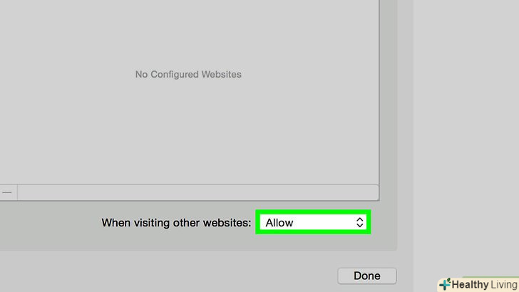 Натисніть на «при відвідуванні інших веб-сайтів".ця опція знаходиться в нижній правій частині вікна. Розкриється меню.
