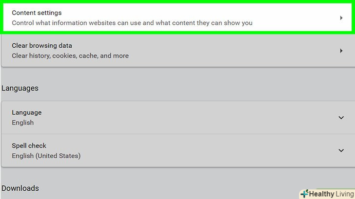 Прокрутіть вниз і натиснітьНалаштування контенту.ця опція знаходиться в нижній частині розділу " конфіденційність і безпека».