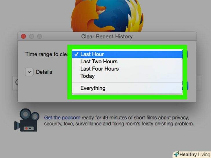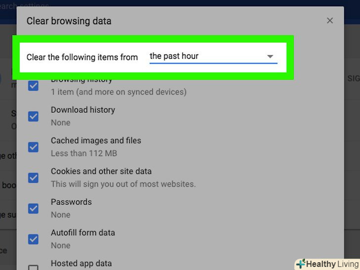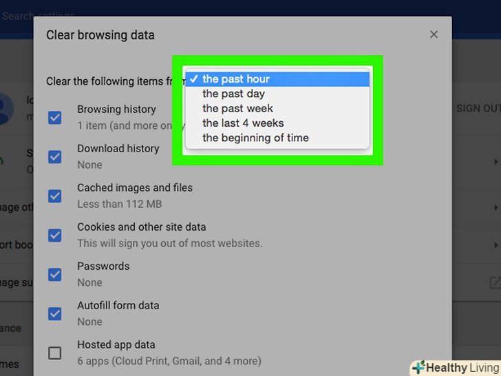 Відкрийте меню "Видалити наступні елементи".воно знаходиться вгорі вікна»видалення даних про переглянуті сторінки".
