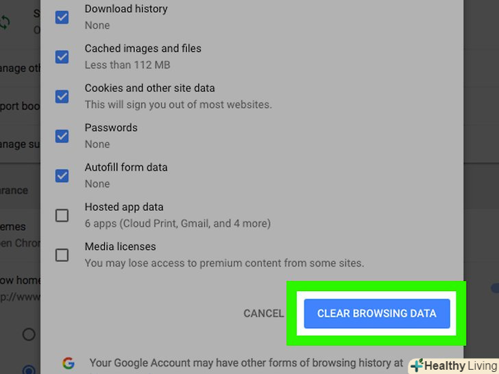 - Якщо хочете, встановіть прапорці у решти опцій, щоб видалити куки і очистити кеш браузера.