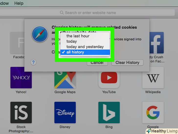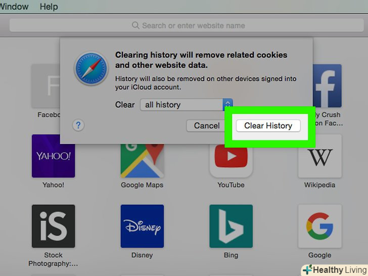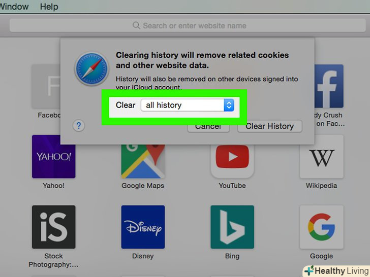 НатиснітьОчистити історію.ця опція знаходиться в нижньому правому куті вікна. Так ви очистите історію браузера Safari за обраний часовий інтервал.