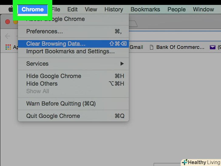 НатиснітьВидалення даних про переглянуті сторінки.ця опція знаходиться вгорі меню "Chrome".