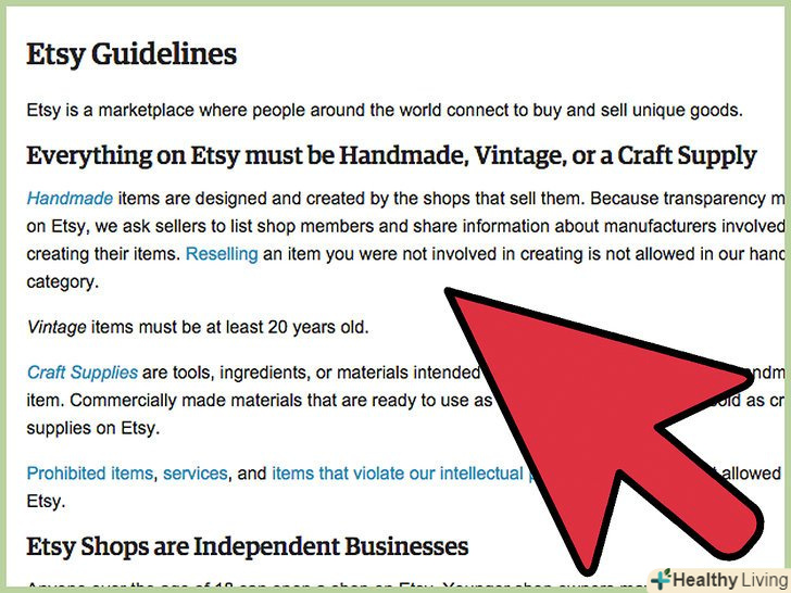 Ознайомтеся з правилами Etsy. вивчіть розділ «Dos and Don'ts» (приписи і заборони). Там показано, що Etsy очікує від вас як продавця, і що Ви, у свою чергу, маєте право очікувати від Etsy для підтримки вашого комерційного підприємства. Правила роз'яснюють, хто має право зареєструвати обліковий запис, скільки акаунтів вам дозволено створити і як ви можете/не можете розміщувати товари для продажу.