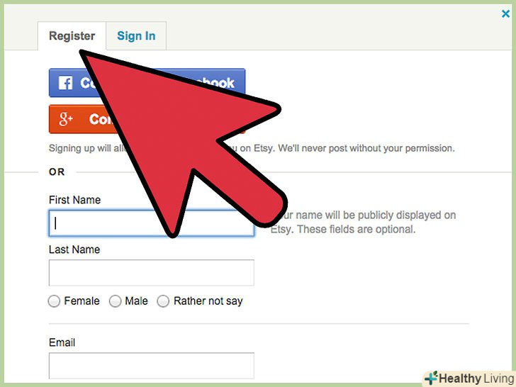 Заведіть обліковий запис Etsy. вам доведеться надати сайту своє ім'я, ім'я користувача, пароль і адресу електронної пошти, на який Etsy відішле лист з підтвердженням Для активації вашого аккаунта. Ви також маєте право вибрати, чи бажаєте отримувати по електронній пошті розсилку сайту і надавати імена тих, хто направив вас на Etsy.