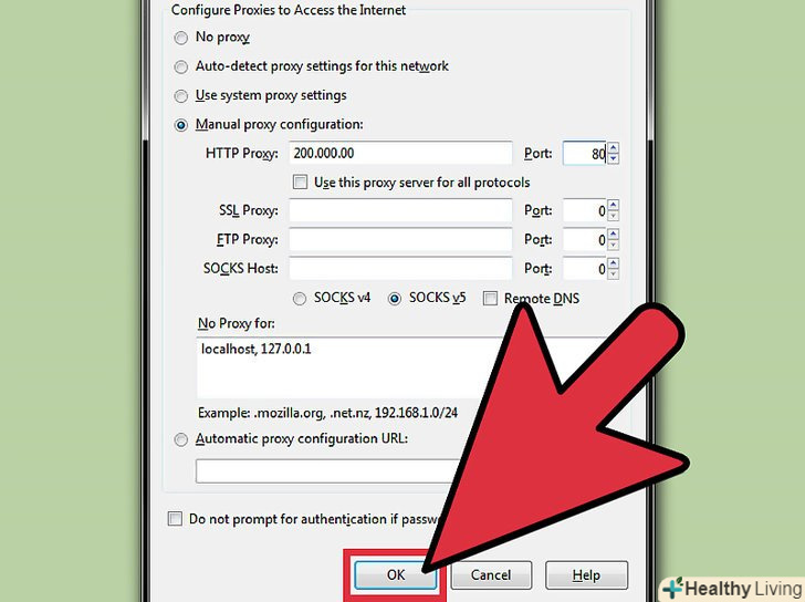 Збережіть налаштування.натисніть "ОК", щоб зберегти зміни, які ви внесли в налаштування проксі-сервера Firefox.