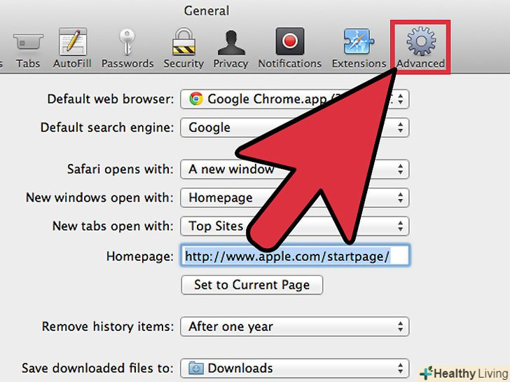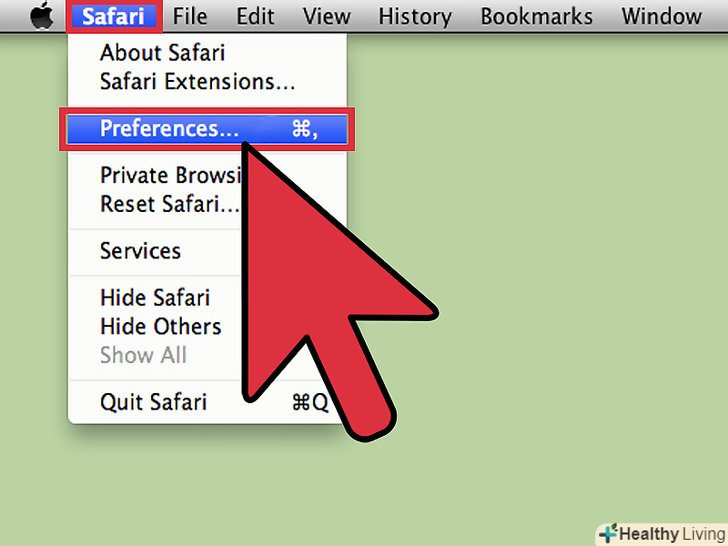 Відкрийте меню налаштувань. натисніть на «Safari «в лівому верхньому кутку панелі меню і виберіть зі списку опцію» Налаштування", щоб відкрити вікно налаштувань браузера.