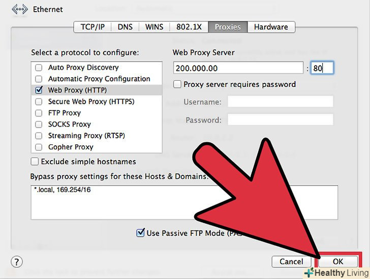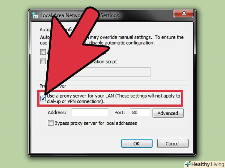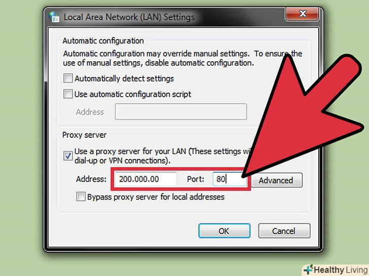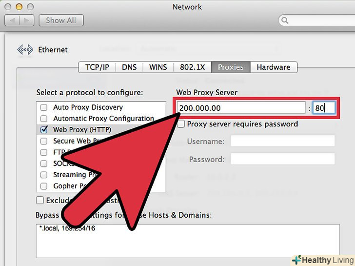 Введіть IP-адресу та номер порту проксі-сервера, до якого хочете підключитися.введіть у відповідні поля адресу та номер порту.- Зв'яжіться з IT-відділом своєї фірми, якщо ви не знаєте IP-адресу і номер порту проксі-сервера, до якого хочете підключитися.