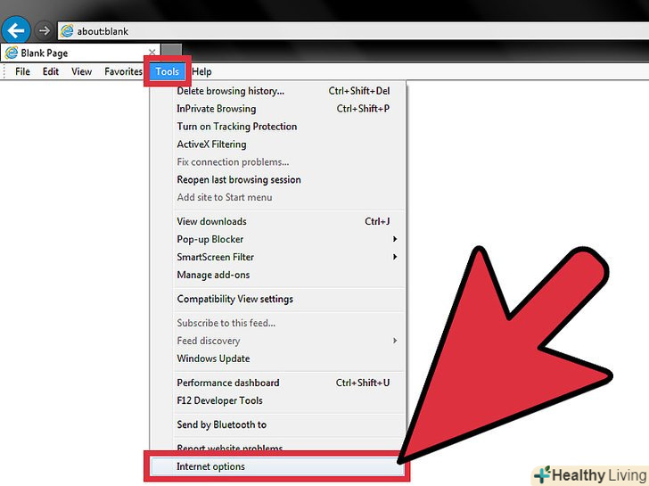 Відкрийте меню "Властивості браузера".натисніть «сервіс» на панелі меню вгорі зліва і виберіть зі списку опцію «Властивості браузера».