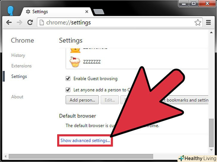 Відкрийте додаткові налаштування.натисніть на опцію «Показати додаткові налаштування», щоб відобразити додаткові налаштування браузера.