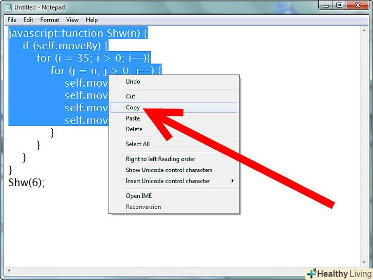 Вставте код в текстовий редактор, наприклад, Блокнот або Notepad ++. зробіть це, якщо код трюку більше одного рядка.