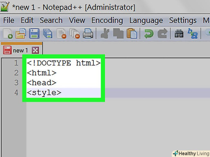 Відкрийте текстовий редактор. можна використовувати звичайний текстовий редактор, наприклад, Блокнот або TextEdit, або більш функціональний текстовий редактор, такий як Notepad++.- В Notepad++ спочатку відкрийте меню "Мова «вгорі вікна і виберіть в ньому»HTML".