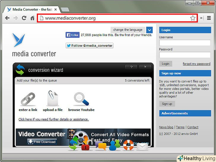 - Підіть на YouTube і знайдіть там потрібне вам відео. Скористайтеся послугами сайту для скачування в YouTube -http://www.mediaconverter.org / і дотримуйтесь інструкцій, викладених там. Зверніть увагу, що якість відео на YouTube майже завжди залишає бажати кращого.