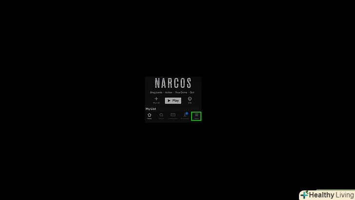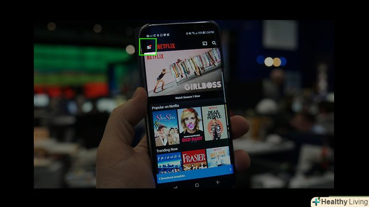 Запустіть програму "Netflix" і натисніть на кнопку☰ . відео будуть завантажуватися в стандартній якості. Якість відео можна поліпшити, але воно буде довше завантажуватися і для нього знадобиться більше вільного місця на пристрої.