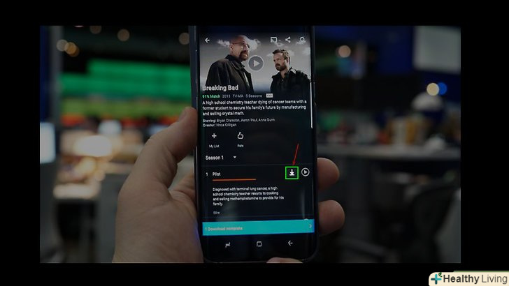 Натисніть на кнопкуDownload (завантажити). Іконка кнопки схожа на стрілку вниз, що вказує на лінію. Вона знаходиться поруч з кнопкою відтворити / Play в списку серій або під описом на сторінці з відео.