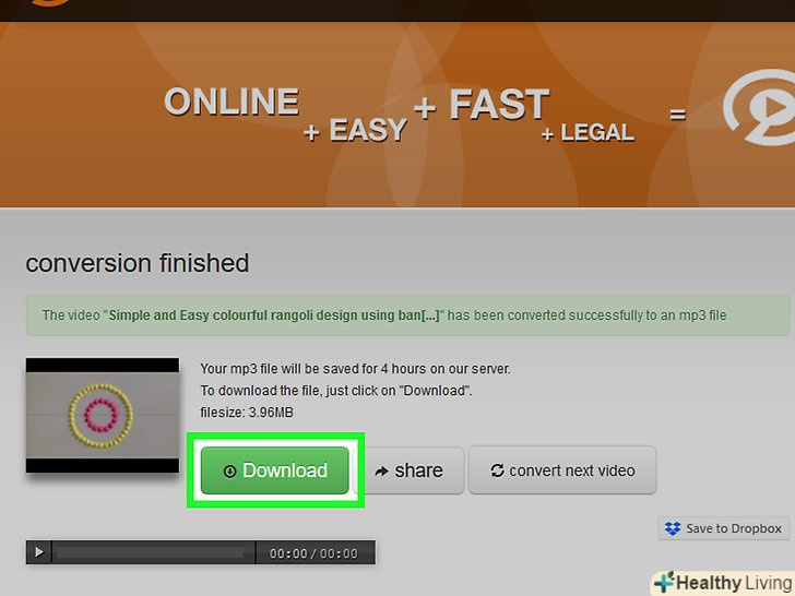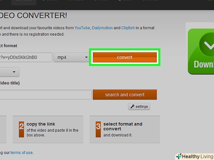 НатиснітьDownload (завантажити). ця зелена кнопка знаходиться посередині сторінки. MP4-файл буде завантажений на комп'ютер, але спочатку вам, можливо, доведеться вибрати папку для завантаження і натиснути «Зберегти».