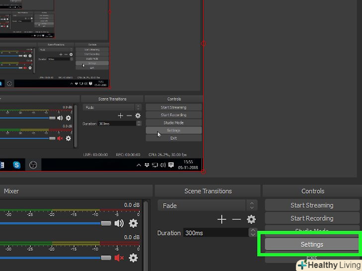 Клацніть поНалаштування . це опція в нижній правій частині вікна OBS Studio. Відкриється вікно налаштувань.