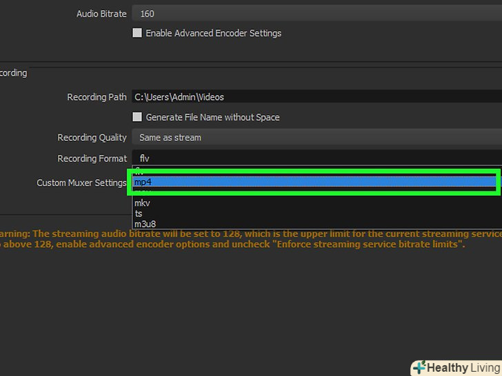 Клацніть поMp4 . це опція в випадаючому меню. Тепер відео буде записано у форматі MP4, який є найбільш універсальним відеоформатом.