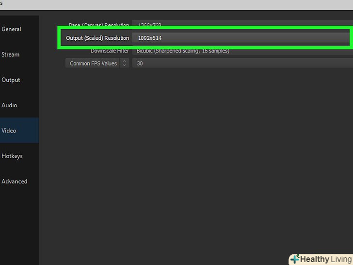Введіть значення, вказане в полі «базова (основа) роздільна здатність», в поле «Вихідна (масштабована) роздільна здатність».- Наприклад, якщо базове Дозвіл «1920x1080», введіть його в поле «Вихідна (масштабована) роздільна здатність».