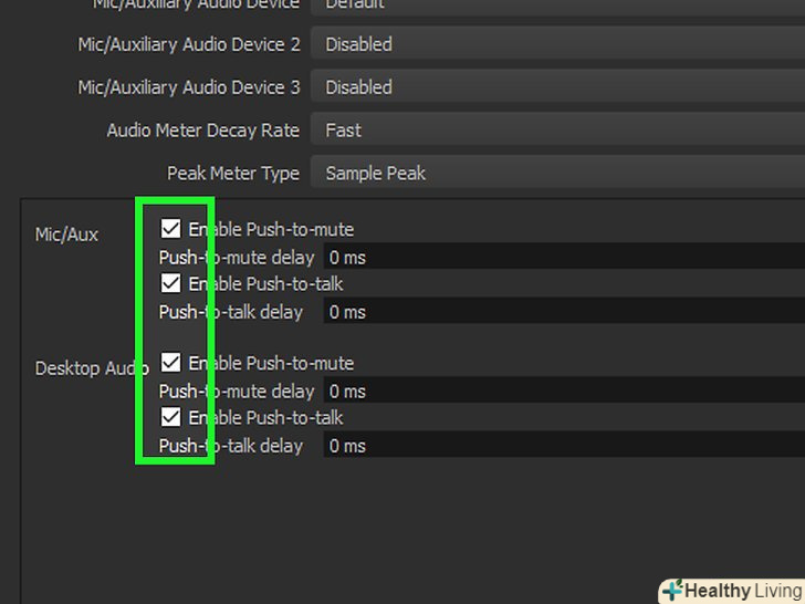 Увімкніть запис звуку. відкрийте кожне меню, ім'я якого починається з «Mic/Auxiliary Audio», і виберіть в них ім'я підключеного мікрофона.