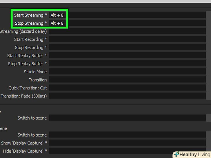 Створіть комбінацію клавіш для запису відео з екрану. клацніть по текстовому полю "почати запис" і натисніть комбінацію клавіш (наприклад, Alt + 8 ), а потім повторіть це з текстовим полем "зупинити запис", використовуючи іншу комбінацію клавіш.
