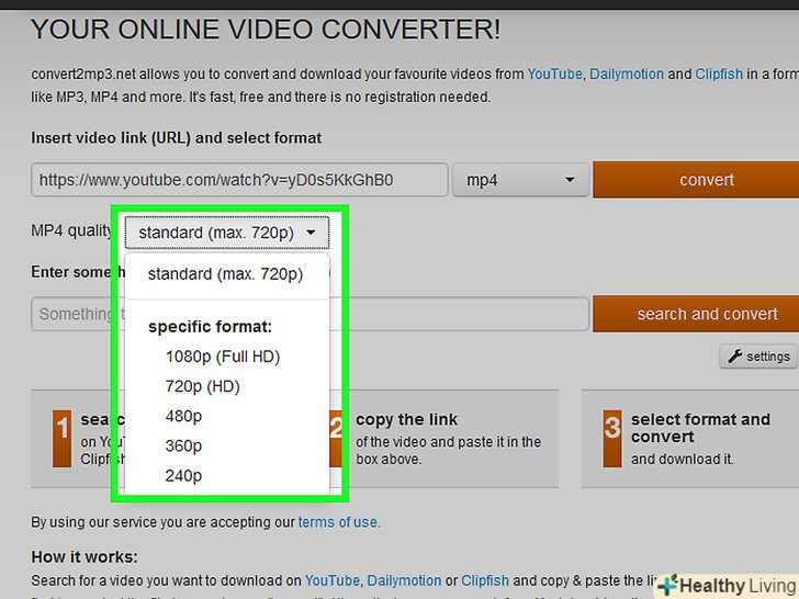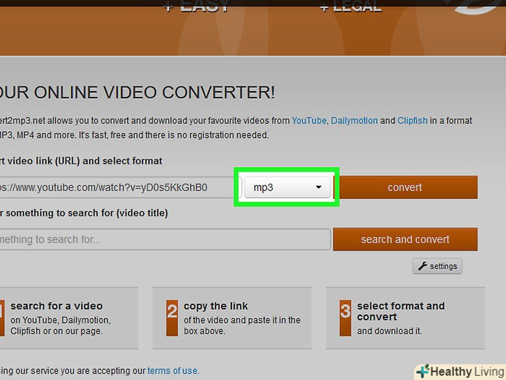 Відкрийте менюMp3 ▼ . воно знаходиться праворуч від текстового поля з адресою відео.