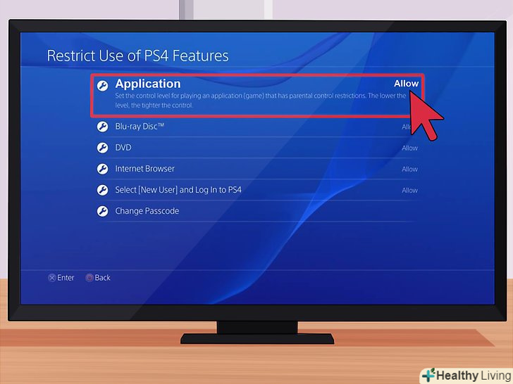 • Виберіть "Налаштування" &#gt;» Батьківський контроль «&#gt;» обмежити використання функцій PS4 «&#gt;»Додатки".