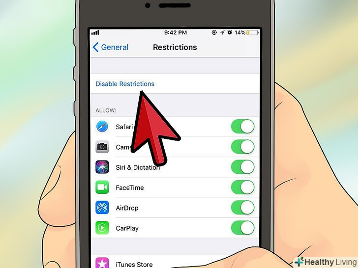 2. Вимкніть батьківський контроль за допомогою пароля. процедура зняття обмеження ідентична для iPhone, iPad і iPod Touch: [1]