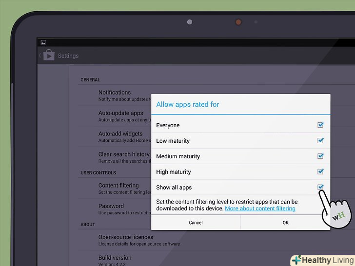 4. Щоб відключити контентні обмеження в Google Play без наявності PIN-коду, скористайтеся очищенням даних.даний метод дозволяє стерти встановлений PIN-код і зняти фільтр.[6]