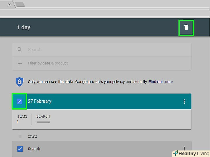 Видаліть окремі записи.при першому відвідуванні сторінки історії пошуку Ви побачите список пошукових запитів за останні кілька днів. Встановіть галку біля кожного запису, яку потрібно видалити, а потім натисніть "Remove items".