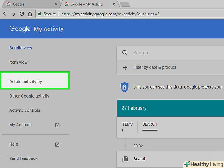 Видаліть всю історію пошуку.для цього натисніть на значок у вигляді шестерінки в правому верхньому куті сторінки історії. У меню виберіть "Settings". У тексті натисніть на посилання "delete all". Відкриється вікно із запитом про підтвердження видалення всієї історії пошуку.- Google не рекомендує видаляти всю історію пошуку, оскільки вона використовується для адаптації виводу результатів пошуку.