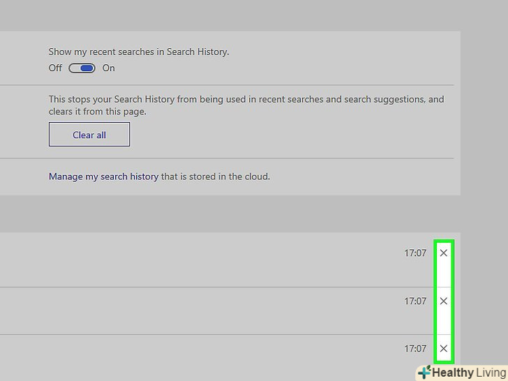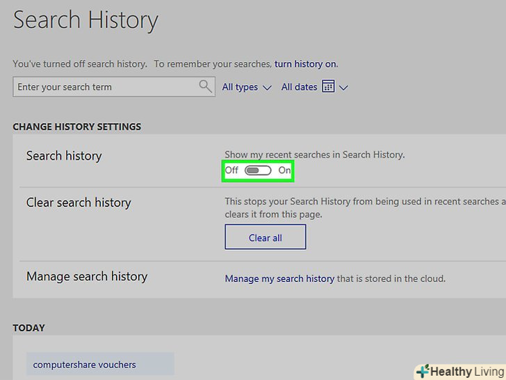 Вимкніть історію пошуку.для цього натисніть» Turn off " праворуч від списку останніх пошукових запитів.[2]