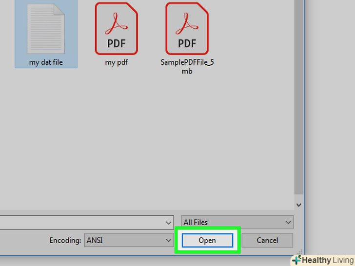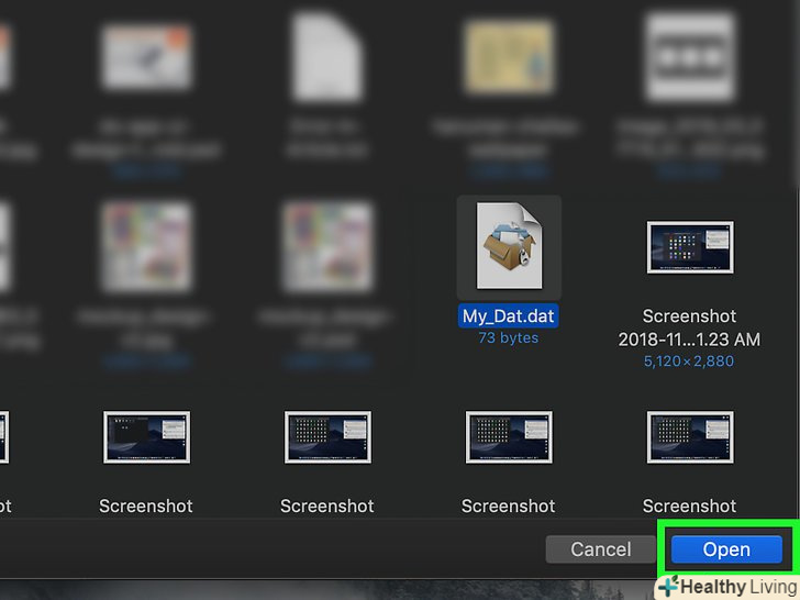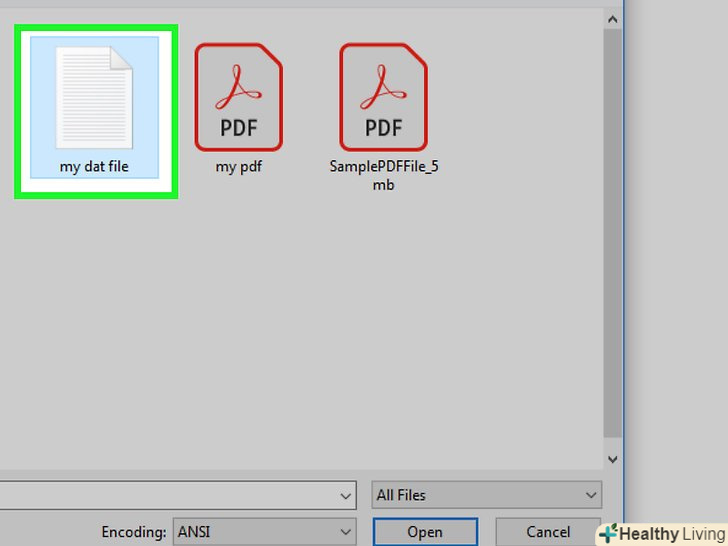 НатиснітьВідкрити . ця кнопка знаходиться в нижньому правому куті вікна. DAT-файл відкриється в програмі.
