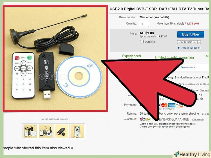 Купуйте зовнішній ТВ-тюнер.він дозволить вам підключити до комп'ютера антену або кабель, за допомогою яких, грубо кажучи, телепрограми і проникають в ваш будинок. Зовнішній ТВ-тюнер дозволить вам переглядати телепередачі на моніторі комп'ютера, деякі навіть дають можливість записувати передачі і зберігати їх на жорсткий диск. Установка зовнішнього ТВ-тюнера в рази простіше установки вбудованого ТВ-тюнера, хоча по функціоналу різниці немає.- Знайти ТВ-тюнери можна в майже будь-якому магазині електроніки.