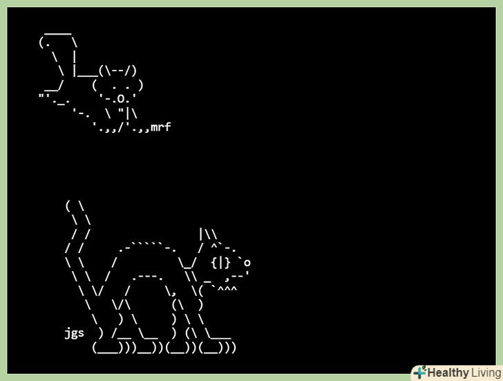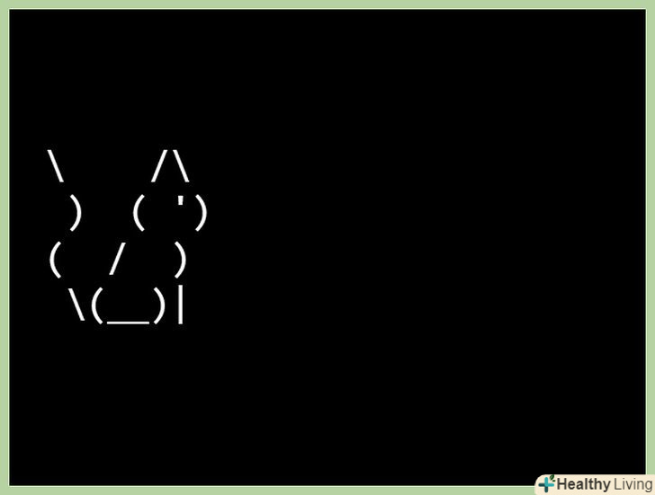 - Освоївшись з малюванням кішки, спробуйте зобразити інших тварин! Наприклад, в мережі можна знайти чимало прикладів зображень кроликів, які легко набирати з клавіатури. [7]