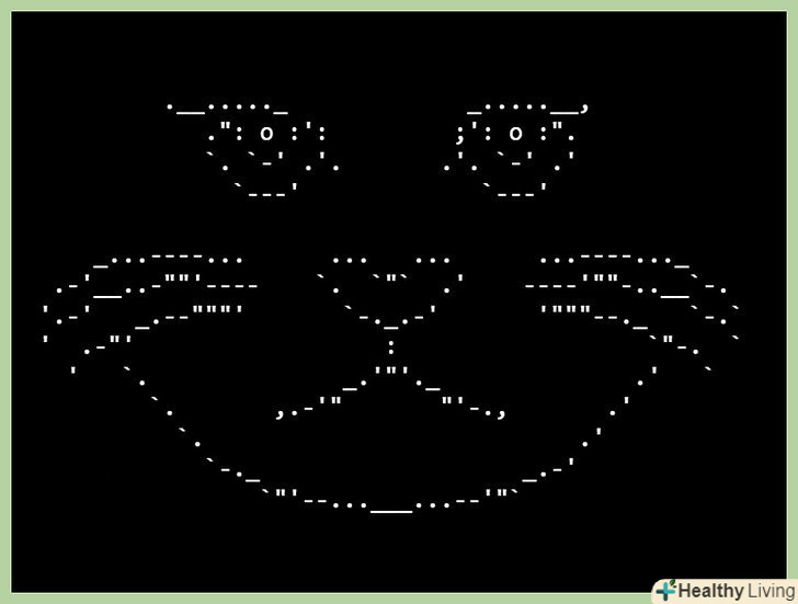 - Просто трохи поекспериментуйте і дайте волю своїй уяві. Створення зображень в символьному кодуванні ASCII вважається формою мистецтва, так як не існує уніфікованого способу малювати комп'ютерними символами кішок або що-небудь ще. При цьому існує багато безкоштовних інтернет-ресурсів з готовими зображеннями.