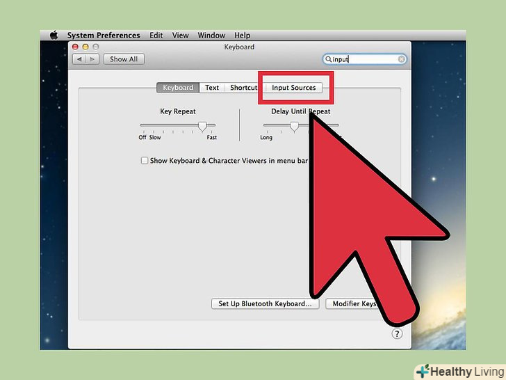 Перейдіть на вкладку «джерело введення». відкривши відповідне підменю, перейдіть на вкладку «джерело введення». Залежно від версії OS X відобразиться список країн (з прапорами) і/або зображення вашої клавіатури.