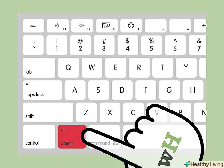 Затисніть клавішу⌥ Option . затиснувши клавішу ⌥ Option (або Alt на деяких клавіатурах) і натиснувши ще одну клавішу, ви введете певний спеціальний символ. Так ви можете вводити десятки символів, в основному використовуваних в математиці і в фінансах (Символи валют). Наприклад:- ⌥ Option + P = π