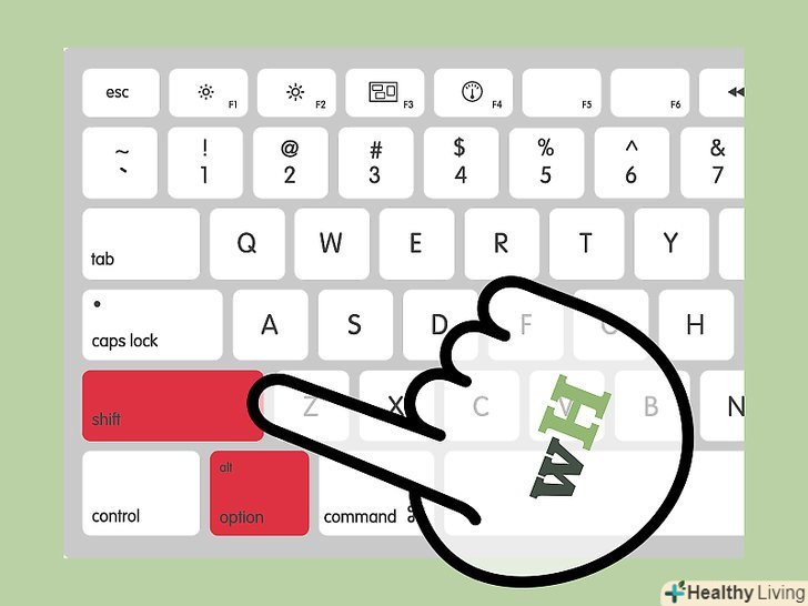Затисніть клавіші⌥ Option і ⇧ Shift . щоб отримати можливість вводити ще більше спеціальних символів, затисніть дві зазначені клавіші і натисніть ще одну клавішу. Повний список поєднань клавіш наведено в кінці статті.- ⌥ Option + ⇧ Shift + 2 = €