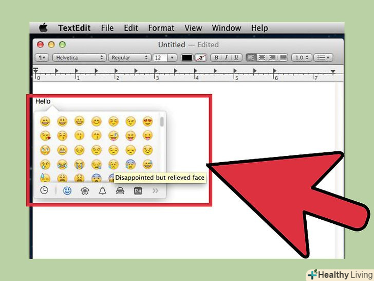 У рядку меню натисніть "Правка". клацніть по текстовому полю, в якому ви хочете ввести смайлик. Цей метод годиться для більшості текстових полів, наприклад, при написанні електронного листа або створення документа. Якщо ви хочете перевірити, чи працює цей метод, зробіть це в додатку TextEdit.- Для того щоб вікно спеціальних символів залишалося відкритим, клацніть по робочому столу.
