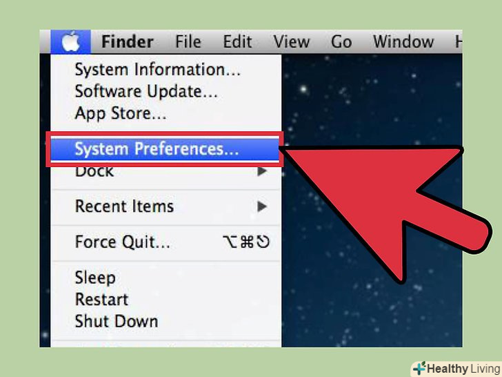 Відкрийте програму «Системні налаштування». для цього відкрийте меню Apple (значок розташований у верхній частині екрана і має вигляд яблука), або відкрийте папку «Додатки», або відкрийте Док.