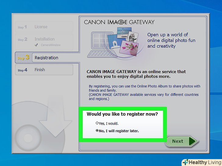 Виберіть варіант зареєструватися пізніше.поставте галочку в поле "ні, зареєструватися пізніше" і натисніть OK після запиту.