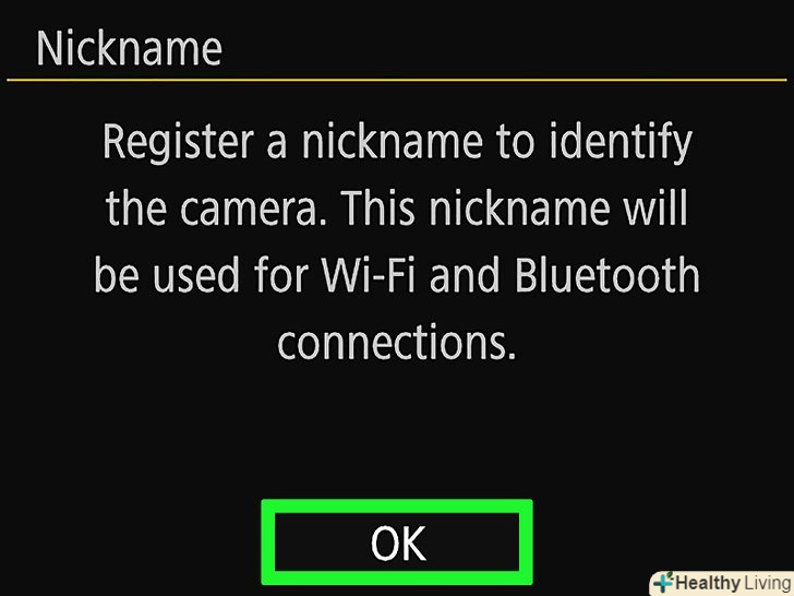 При необхідності вкажіть ім'я камери.у разі запиту задати ім'я камери Використовуйте букви в екранному меню. Ім'я необхідно для того, щоб комп'ютер зміг дізнатися вашу камеру, яку потрібно підключити.