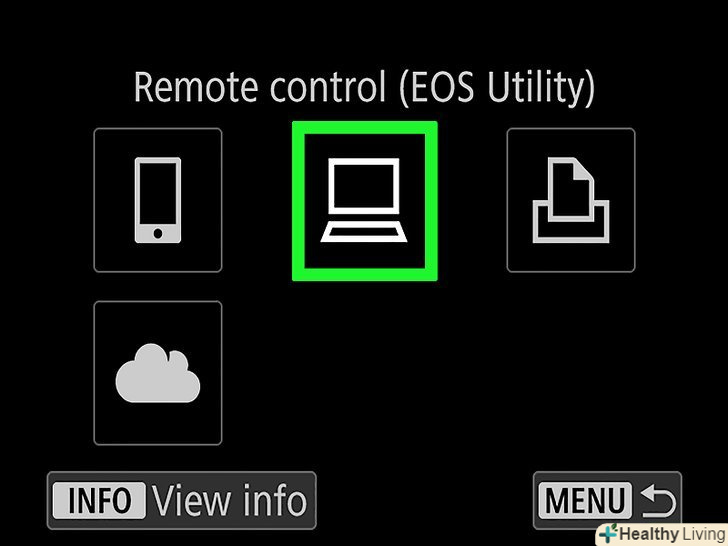 Виберіть комп'ютер. виберіть ім'я свого комп'ютера і натисніть FUNC. SET. Тепер камера підключена до комп'ютера.[1]- Іноді спочатку потрібно вибратиАвто для визначення мережевих налаштувань.